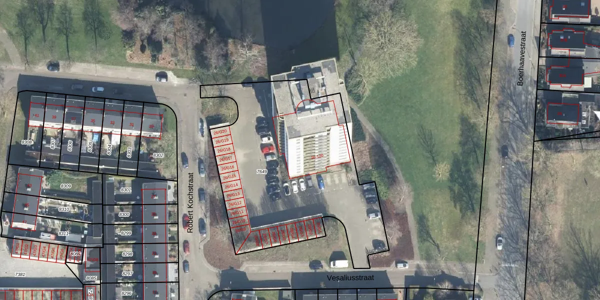 Het perceel waarop Robert Kochstraat 46 staat heeft een oppervlakte van 2465 m². Dit is een zeer groot perceel. De perceeloppervlakte wordt geregistreerd door het Kadaster. Gedetailleerde informatie over de maten van dit perceel kunt u vinden in het rapport Kadastrale kaart met maatvoering van Robert Kochstraat 46.