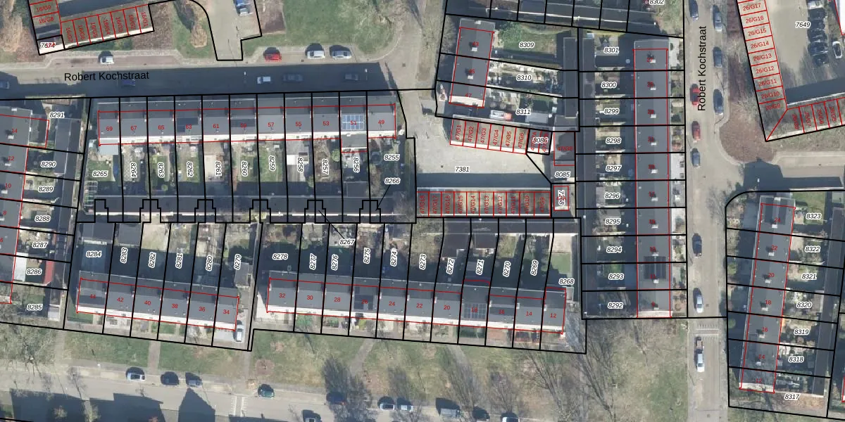 Het perceel waarop Robert Kochstraat 47-G18 staat heeft een oppervlakte van 738 m². Dit is een groot perceel. De perceeloppervlakte wordt geregistreerd door het Kadaster. Gedetailleerde informatie over de maten van dit perceel kunt u vinden in het rapport Kadastrale kaart met maatvoering van Robert Kochstraat 47-G18.