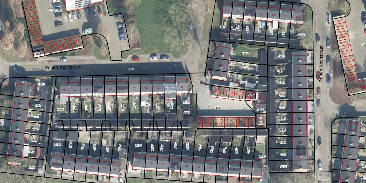 Het perceel waarop Robert Kochstraat 49 staat heeft een oppervlakte van 305 m². Dit is een groot perceel. De perceeloppervlakte wordt geregistreerd door het Kadaster. Gedetailleerde informatie over de maten van dit perceel kunt u vinden in het rapport Kadastrale kaart met maatvoering van Robert Kochstraat 49.