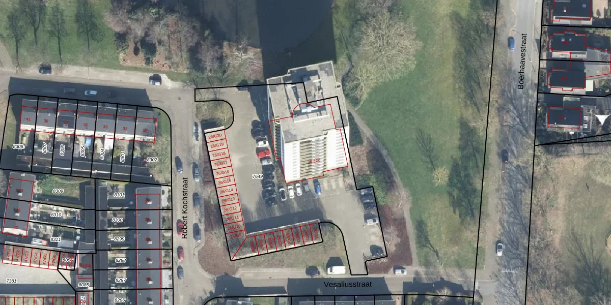 Het perceel waarop Robert Kochstraat 62 staat heeft een oppervlakte van 2465 m². Dit is een zeer groot perceel. De perceeloppervlakte wordt geregistreerd door het Kadaster. Gedetailleerde informatie over de maten van dit perceel kunt u vinden in het rapport Kadastrale kaart met maatvoering van Robert Kochstraat 62.