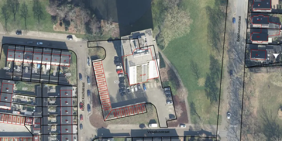 Het perceel waarop Robert Kochstraat 70 staat heeft een oppervlakte van 2465 m². Dit is een zeer groot perceel. De perceeloppervlakte wordt geregistreerd door het Kadaster. Gedetailleerde informatie over de maten van dit perceel kunt u vinden in het rapport Kadastrale kaart met maatvoering van Robert Kochstraat 70.