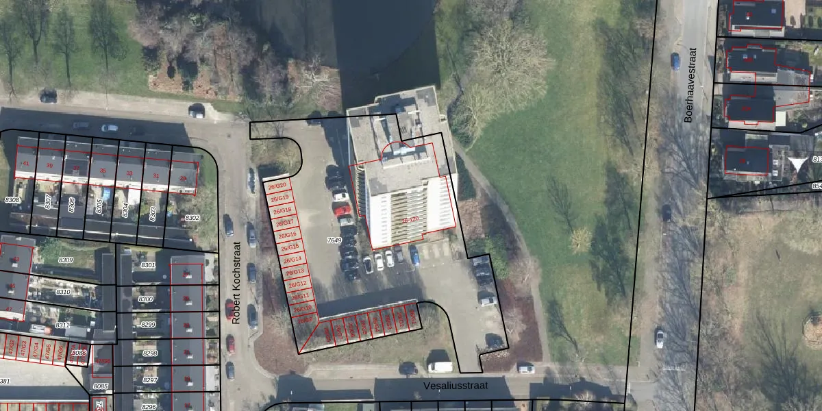 Het perceel waarop Robert Kochstraat 78 staat heeft een oppervlakte van 2465 m². Dit is een zeer groot perceel. De perceeloppervlakte wordt geregistreerd door het Kadaster. Gedetailleerde informatie over de maten van dit perceel kunt u vinden in het rapport Kadastrale kaart met maatvoering van Robert Kochstraat 78.