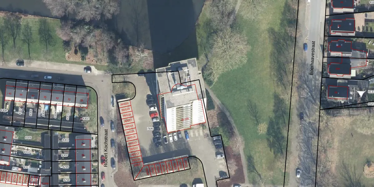 Het perceel waarop Robert Kochstraat 90 staat heeft een oppervlakte van 2465 m². Dit is een zeer groot perceel. De perceeloppervlakte wordt geregistreerd door het Kadaster. Gedetailleerde informatie over de maten van dit perceel kunt u vinden in het rapport Kadastrale kaart met maatvoering van Robert Kochstraat 90.