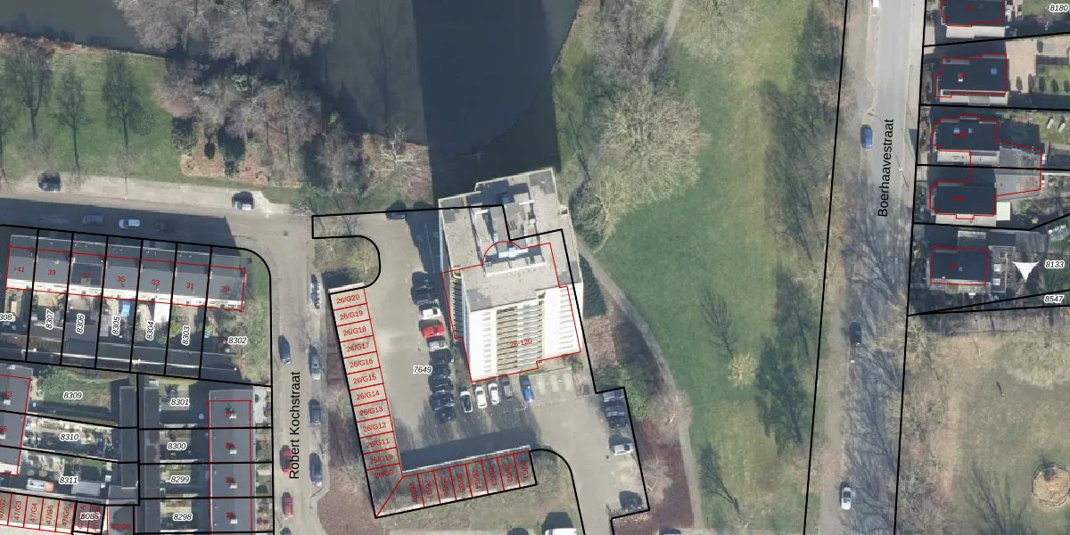 Het perceel waarop Robert Kochstraat 98 staat heeft een oppervlakte van 2465 m². Dit is een zeer groot perceel. De perceeloppervlakte wordt geregistreerd door het Kadaster. Gedetailleerde informatie over de maten van dit perceel kunt u vinden in het rapport Kadastrale kaart met maatvoering van Robert Kochstraat 98.