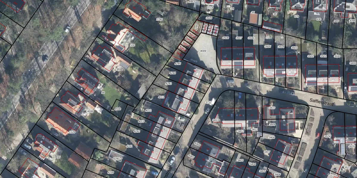 Robijnstraat 45 is gelegen op kadastraal perceel SRN00R4243. Deze kadastrale aanduiding is uniek en wordt gebruikt door het Kadaster om eigendomsrechten en andere zakelijke rechten vast te leggen. Het perceel maakt onderdeel uit van de kadastrale gemeente Hoog Soeren.