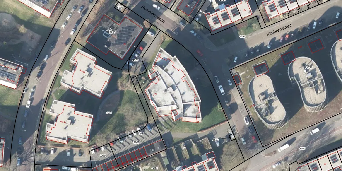 Het perceel waarop Romeinenlaan 41 staat heeft een oppervlakte van 4255 m². Dit is een zeer groot perceel. De perceeloppervlakte wordt geregistreerd door het Kadaster. Gedetailleerde informatie over de maten van dit perceel kunt u vinden in het rapport Kadastrale kaart met maatvoering van Romeinenlaan 41.