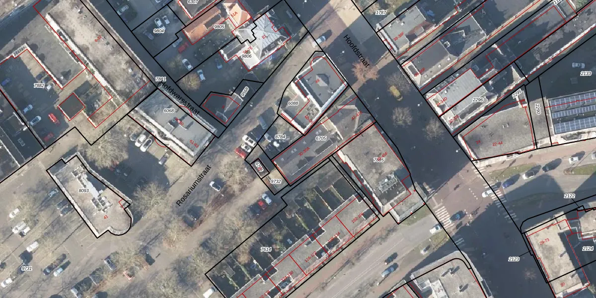 Het perceel waarop Rosariumstraat 30-A staat heeft een oppervlakte van 442 m². Dit is een groot perceel. De perceeloppervlakte wordt geregistreerd door het Kadaster. Gedetailleerde informatie over de maten van dit perceel kunt u vinden in het rapport Kadastrale kaart met maatvoering van Rosariumstraat 30-A.