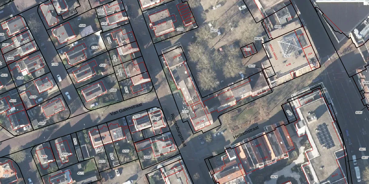 Het perceel waarop Rustenburgstraat 158 staat heeft een oppervlakte van 1118 m². Dit is een zeer groot perceel. De perceeloppervlakte wordt geregistreerd door het Kadaster. Gedetailleerde informatie over de maten van dit perceel kunt u vinden in het rapport Kadastrale kaart met maatvoering van Rustenburgstraat 158.