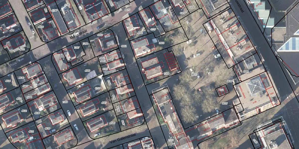 Het perceel waarop Rustenburgstraat 202 staat heeft een oppervlakte van 457 m². Dit is een groot perceel. De perceeloppervlakte wordt geregistreerd door het Kadaster. Gedetailleerde informatie over de maten van dit perceel kunt u vinden in het rapport Kadastrale kaart met maatvoering van Rustenburgstraat 202.