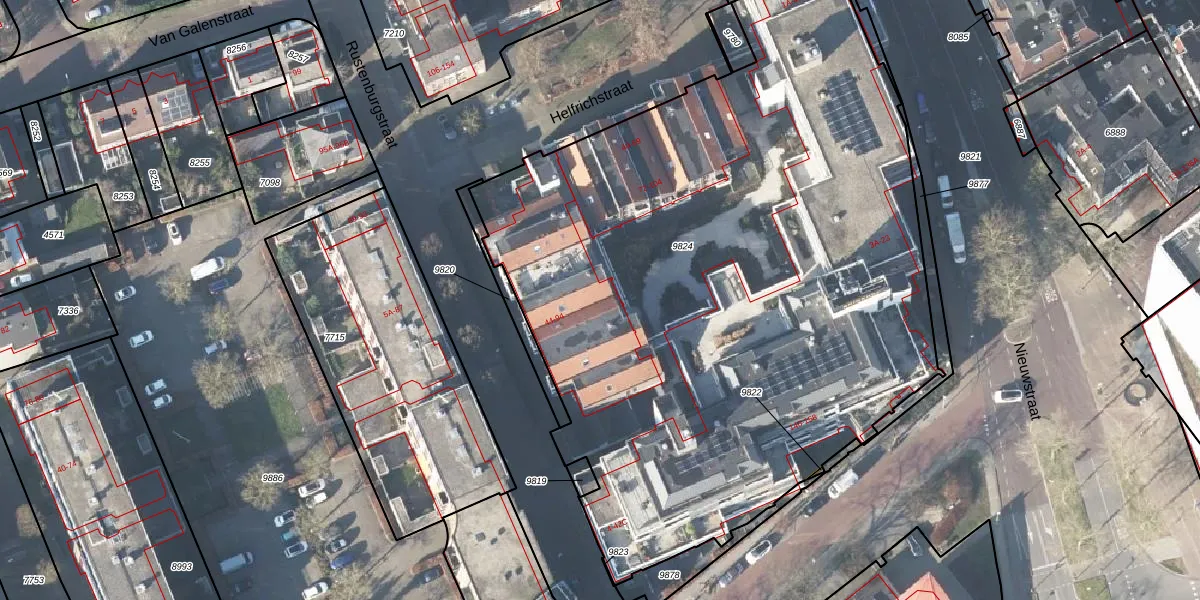 Het perceel waarop Rustenburgstraat 88 staat heeft een oppervlakte van 4719 m². Dit is een zeer groot perceel. De perceeloppervlakte wordt geregistreerd door het Kadaster. Gedetailleerde informatie over de maten van dit perceel kunt u vinden in het rapport Kadastrale kaart met maatvoering van Rustenburgstraat 88.