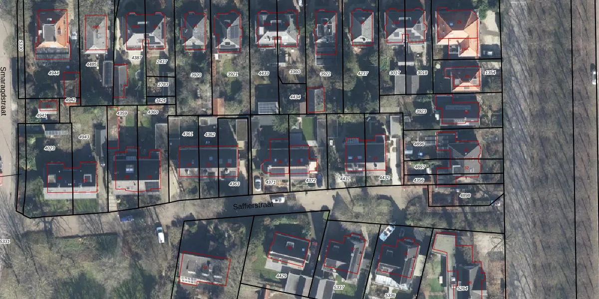 Het perceel waarop Saffierstraat 16 staat heeft een oppervlakte van 327 m². Dit is een groot perceel. De perceeloppervlakte wordt geregistreerd door het Kadaster. Gedetailleerde informatie over de maten van dit perceel kunt u vinden in het rapport Kadastrale kaart met maatvoering van Saffierstraat 16.