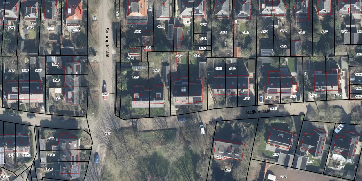 Het perceel waarop Saffierstraat 28 staat heeft een oppervlakte van 359 m². Dit is een groot perceel. De perceeloppervlakte wordt geregistreerd door het Kadaster. Gedetailleerde informatie over de maten van dit perceel kunt u vinden in het rapport Kadastrale kaart met maatvoering van Saffierstraat 28.