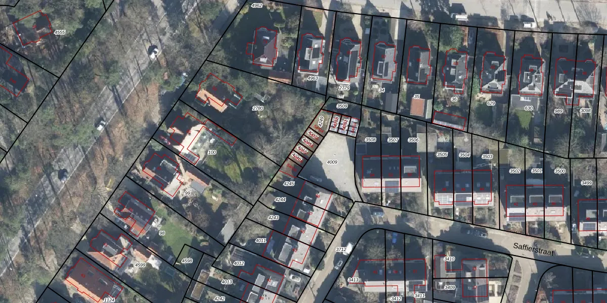 Gebruik de zoekbalk of klik op een perceel voor informatie over de adressen binnen dit perceel.