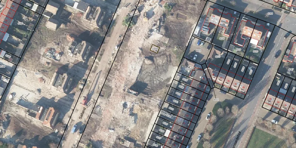 Het perceel waarop Salland 30 staat heeft een oppervlakte van 6878 m². Dit is een zeer groot perceel. De perceeloppervlakte wordt geregistreerd door het Kadaster. Gedetailleerde informatie over de maten van dit perceel kunt u vinden in het rapport Kadastrale kaart met maatvoering van Salland 30.