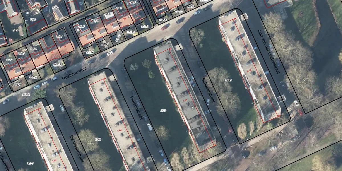 Het perceel waarop Schaperstraat 54 staat heeft een oppervlakte van 2486 m². Dit is een zeer groot perceel. De perceeloppervlakte wordt geregistreerd door het Kadaster. Gedetailleerde informatie over de maten van dit perceel kunt u vinden in het rapport Kadastrale kaart met maatvoering van Schaperstraat 54.
