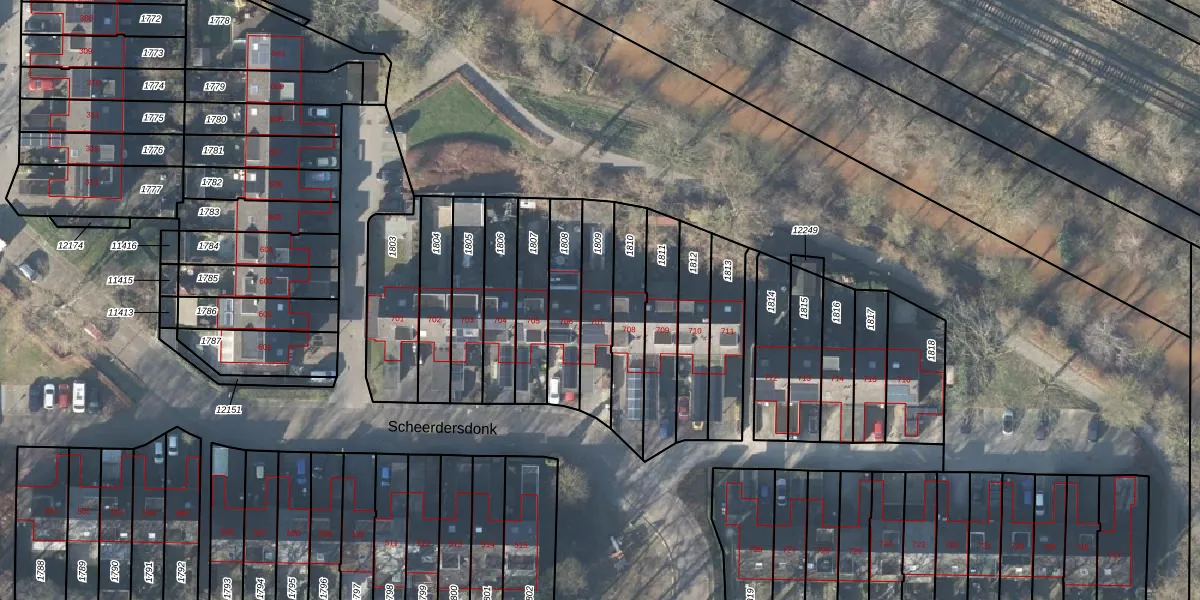 Het perceel waarop Scheerdersdonk 707 staat heeft een oppervlakte van 195 m². Dit is een middelgroot perceel. De perceeloppervlakte wordt geregistreerd door het Kadaster. Gedetailleerde informatie over de maten van dit perceel kunt u vinden in het rapport Kadastrale kaart met maatvoering van Scheerdersdonk 707.