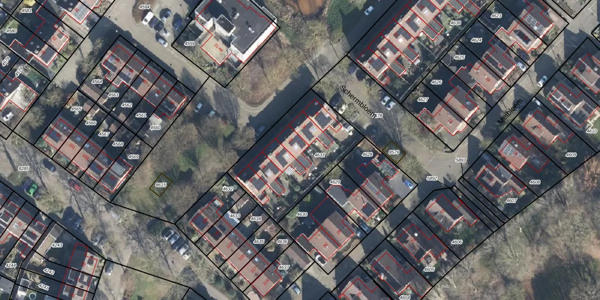 Het perceel waarop Schermbloem 42 staat heeft een oppervlakte van 970 m². Dit is een groot perceel. De perceeloppervlakte wordt geregistreerd door het Kadaster. Gedetailleerde informatie over de maten van dit perceel kunt u vinden in het rapport Kadastrale kaart met maatvoering van Schermbloem 42.