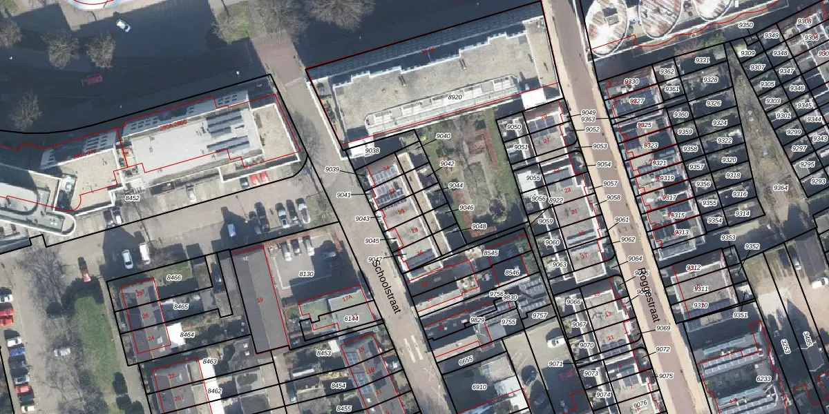 Het perceel waarop Schoolstraat 30 staat heeft een oppervlakte van 57 m². Dit is een klein perceel. De perceeloppervlakte wordt geregistreerd door het Kadaster. Gedetailleerde informatie over de maten van dit perceel kunt u vinden in het rapport Kadastrale kaart met maatvoering van Schoolstraat 30.