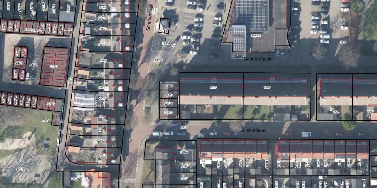 Het perceel waarop Schubertplein 14 staat heeft een oppervlakte van 845 m². Dit is een groot perceel. De perceeloppervlakte wordt geregistreerd door het Kadaster. Gedetailleerde informatie over de maten van dit perceel kunt u vinden in het rapport Kadastrale kaart met maatvoering van Schubertplein 14.