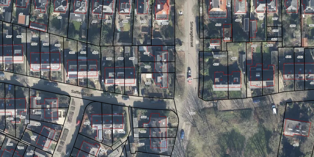 Smaragdstraat 31 is gelegen op kadastraal perceel SRN00R3569. Deze kadastrale aanduiding is uniek en wordt gebruikt door het Kadaster om eigendomsrechten en andere zakelijke rechten vast te leggen. Het perceel maakt onderdeel uit van de kadastrale gemeente Hoog Soeren.