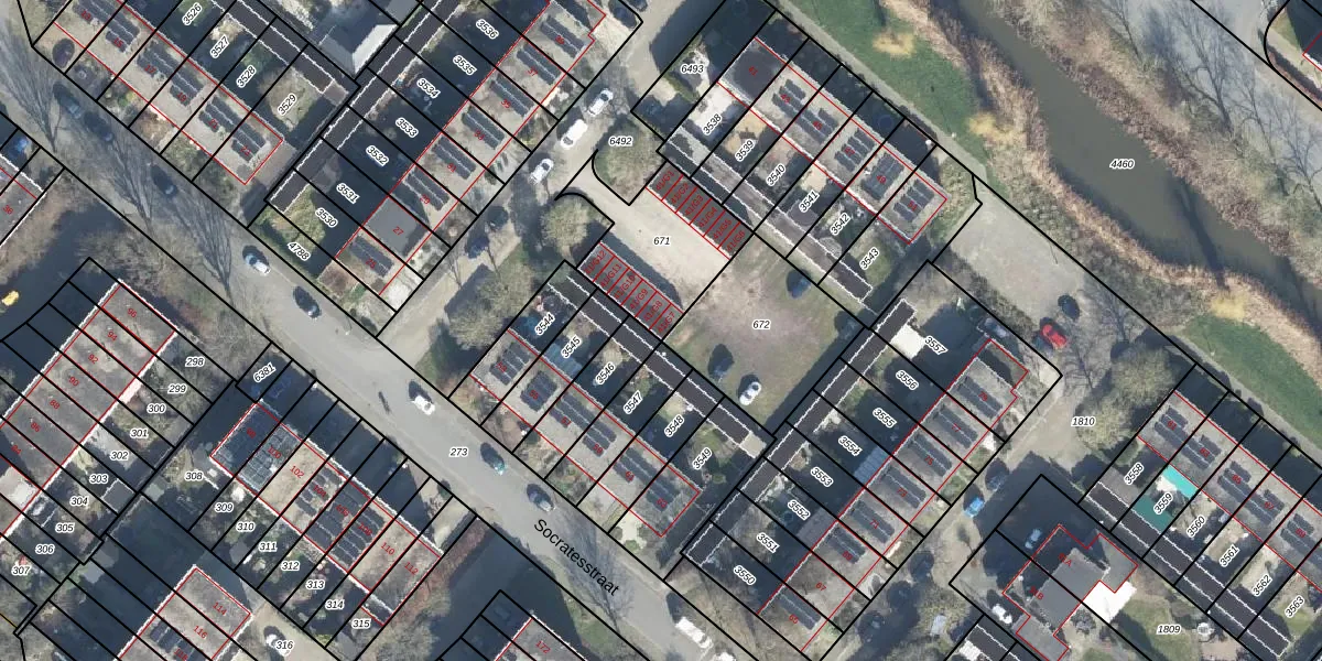 Het perceel waarop Socratesstraat 41-G7 staat heeft een oppervlakte van 404 m². Dit is een groot perceel. De perceeloppervlakte wordt geregistreerd door het Kadaster. Gedetailleerde informatie over de maten van dit perceel kunt u vinden in het rapport Kadastrale kaart met maatvoering van Socratesstraat 41-G7.