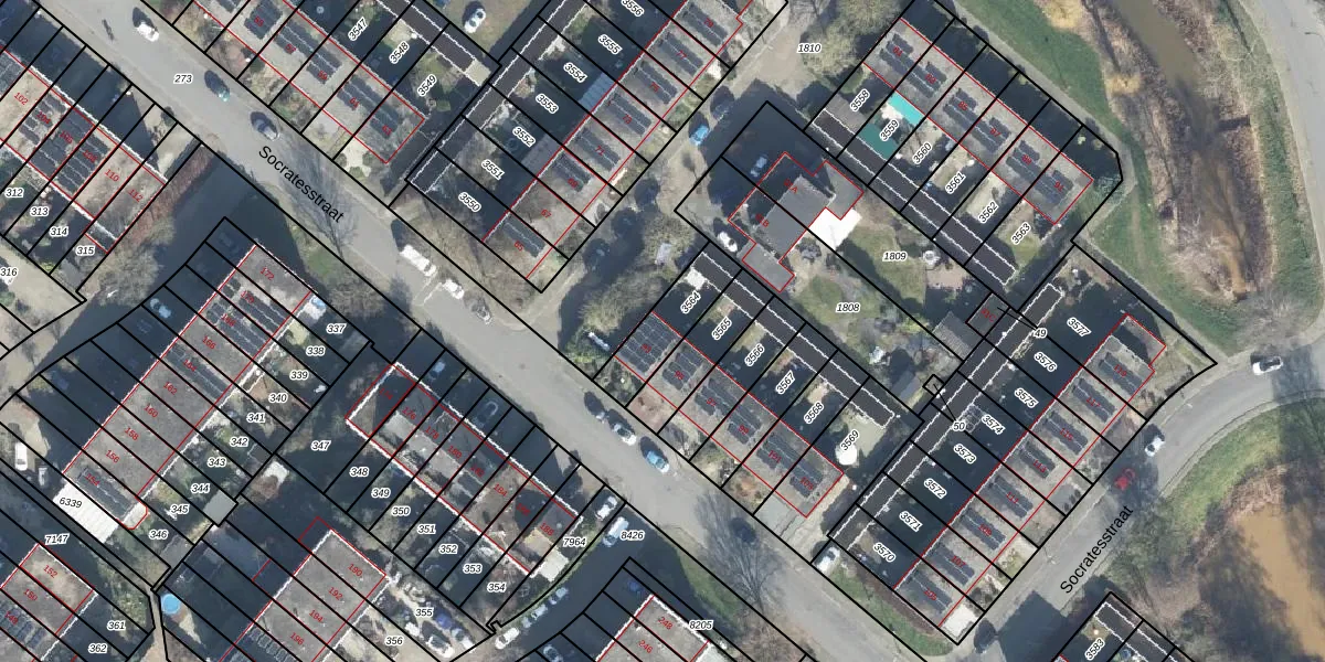 Het perceel waarop Socratesstraat 93 staat heeft een oppervlakte van 180 m². Dit is een middelgroot perceel. De perceeloppervlakte wordt geregistreerd door het Kadaster. Gedetailleerde informatie over de maten van dit perceel kunt u vinden in het rapport Kadastrale kaart met maatvoering van Socratesstraat 93.