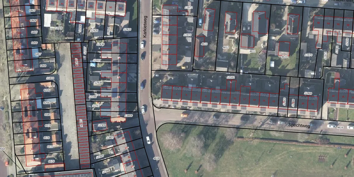 Het perceel waarop Spechtweg 3 staat heeft een oppervlakte van 1625 m². Dit is een zeer groot perceel. De perceeloppervlakte wordt geregistreerd door het Kadaster. Gedetailleerde informatie over de maten van dit perceel kunt u vinden in het rapport Kadastrale kaart met maatvoering van Spechtweg 3.