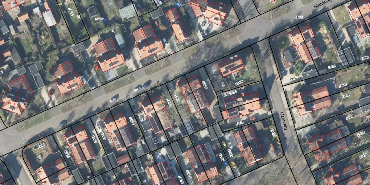 Staalweg 21 is gelegen op kadastraal perceel APD01L13467. Deze kadastrale aanduiding is uniek en wordt gebruikt door het Kadaster om eigendomsrechten en andere zakelijke rechten vast te leggen. Het perceel maakt onderdeel uit van de kadastrale gemeente Apeldoorn.
