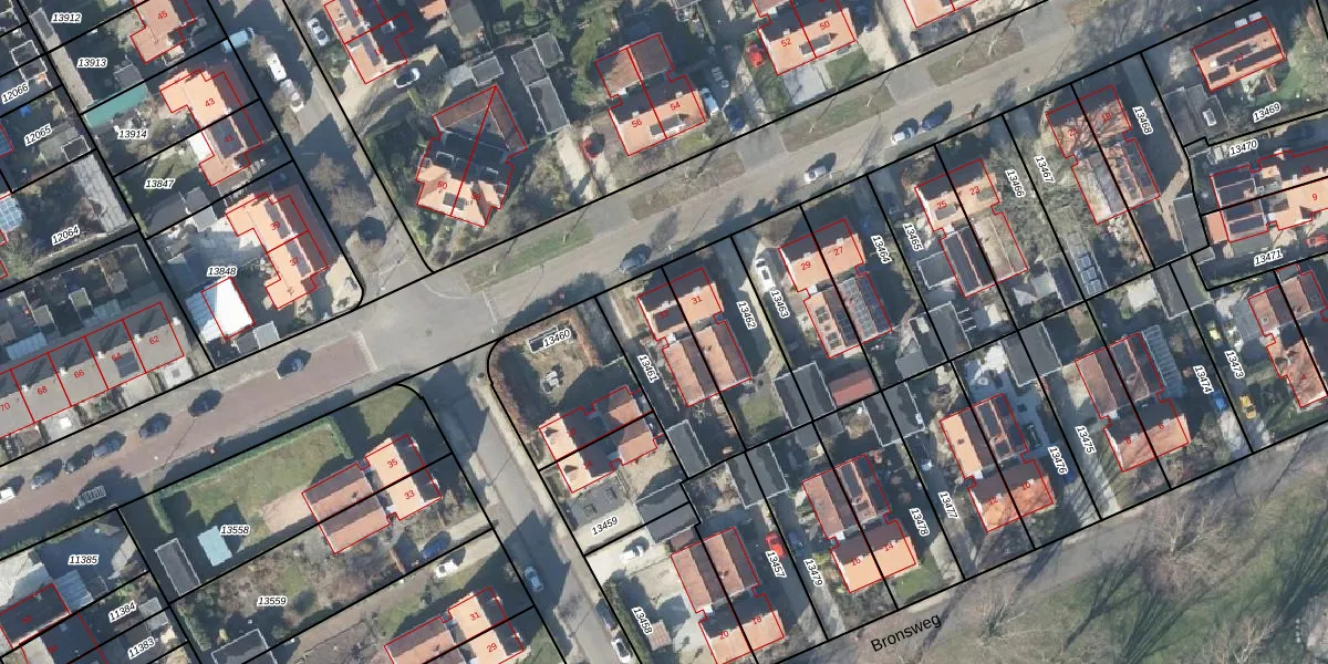 Gebruik de zoekbalk of klik op een perceel voor informatie over de adressen binnen dit perceel.