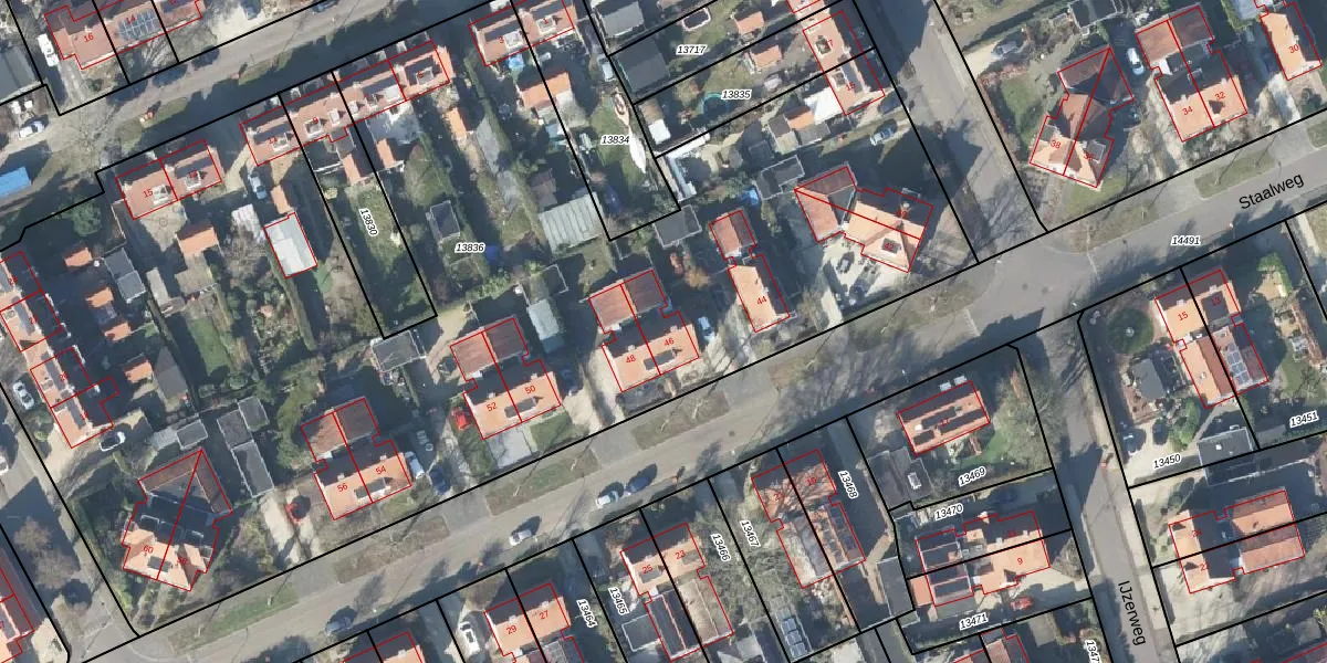 Het perceel waarop Staalweg 46 staat heeft een oppervlakte van 7313 m². Dit is een zeer groot perceel. De perceeloppervlakte wordt geregistreerd door het Kadaster. Gedetailleerde informatie over de maten van dit perceel kunt u vinden in het rapport Kadastrale kaart met maatvoering van Staalweg 46.