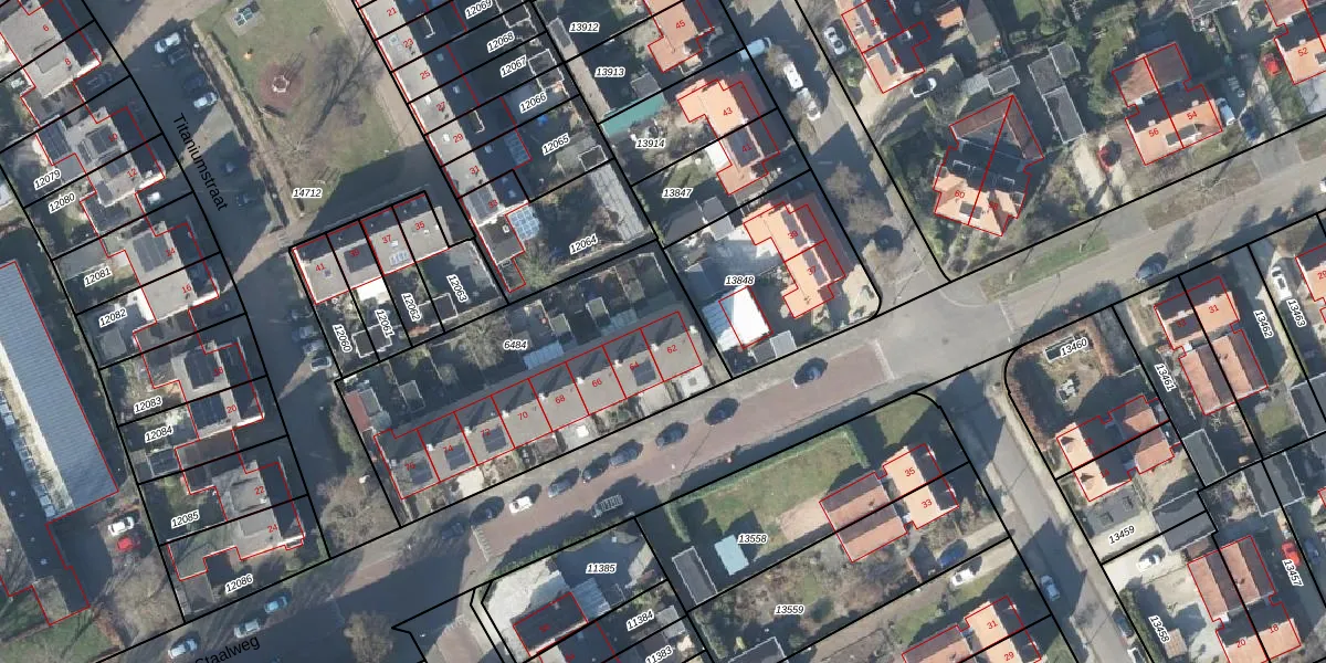 Staalweg 62 is gelegen op kadastraal perceel APD01L6484. Deze kadastrale aanduiding is uniek en wordt gebruikt door het Kadaster om eigendomsrechten en andere zakelijke rechten vast te leggen. Het perceel maakt onderdeel uit van de kadastrale gemeente Apeldoorn.