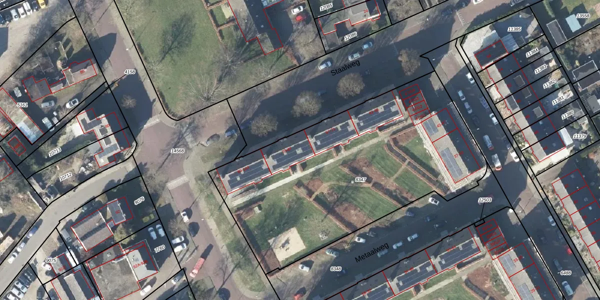 Het perceel waarop Staalweg 83 staat heeft een oppervlakte van 3196 m². Dit is een zeer groot perceel. De perceeloppervlakte wordt geregistreerd door het Kadaster. Gedetailleerde informatie over de maten van dit perceel kunt u vinden in het rapport Kadastrale kaart met maatvoering van Staalweg 83.