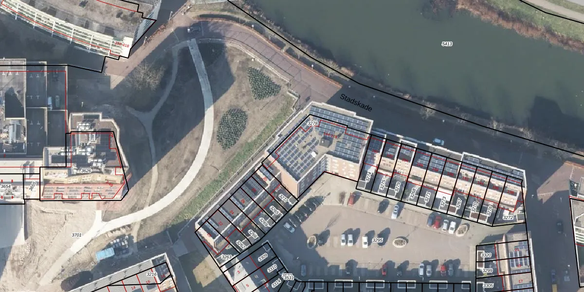 Het perceel waarop Stadskade 150 staat heeft een oppervlakte van 615 m². Dit is een groot perceel. De perceeloppervlakte wordt geregistreerd door het Kadaster. Gedetailleerde informatie over de maten van dit perceel kunt u vinden in het rapport Kadastrale kaart met maatvoering van Stadskade 150.