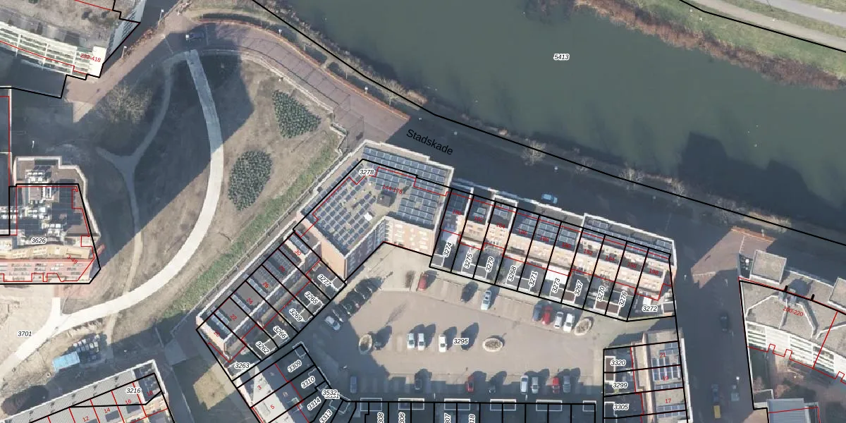 Het perceel waarop Stadskade 154 staat heeft een oppervlakte van 615 m². Dit is een groot perceel. De perceeloppervlakte wordt geregistreerd door het Kadaster. Gedetailleerde informatie over de maten van dit perceel kunt u vinden in het rapport Kadastrale kaart met maatvoering van Stadskade 154.