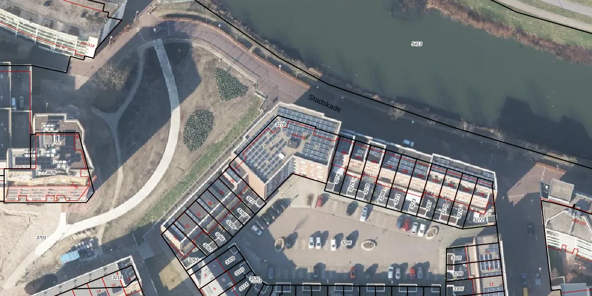 Het perceel waarop Stadskade 168 staat heeft een oppervlakte van 615 m². Dit is een groot perceel. De perceeloppervlakte wordt geregistreerd door het Kadaster. Gedetailleerde informatie over de maten van dit perceel kunt u vinden in het rapport Kadastrale kaart met maatvoering van Stadskade 168.