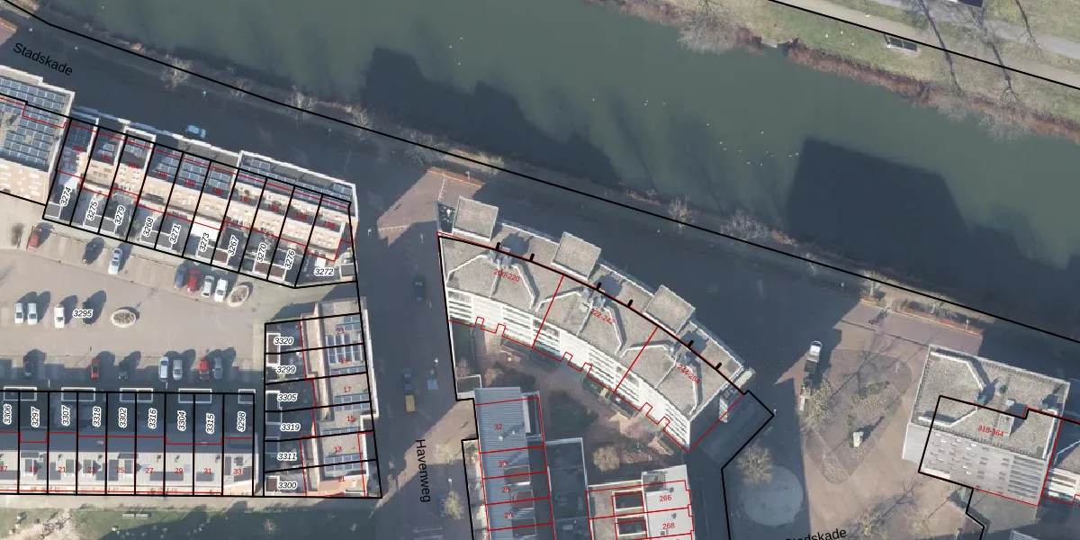 Het perceel waarop Stadskade 202 staat heeft een oppervlakte van 1,4 ha. Dit is een zeer groot perceel. De perceeloppervlakte wordt geregistreerd door het Kadaster. Gedetailleerde informatie over de maten van dit perceel kunt u vinden in het rapport Kadastrale kaart met maatvoering van Stadskade 202.