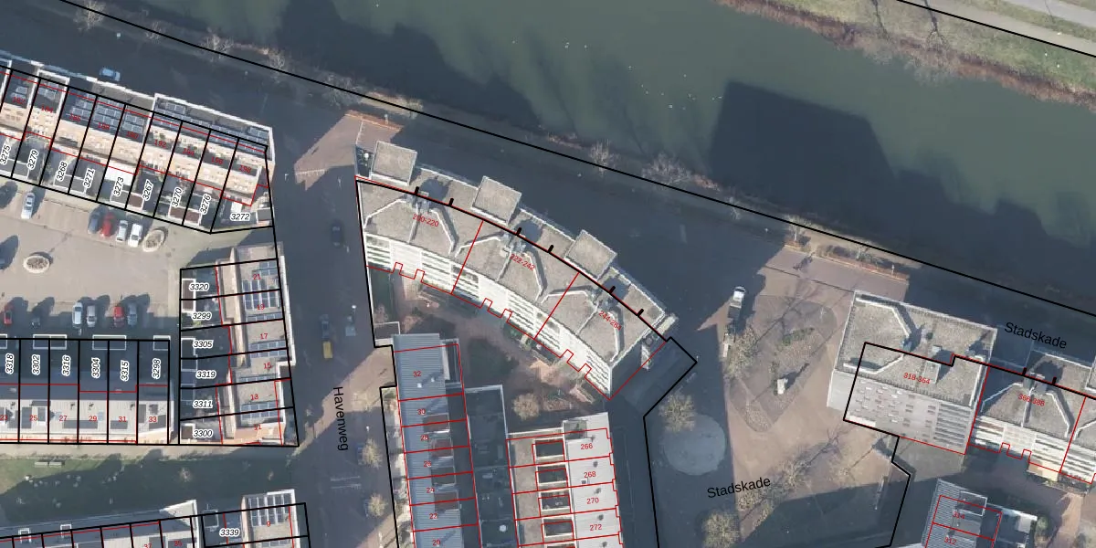 Het perceel waarop Stadskade 228 staat heeft een oppervlakte van 1,4 ha. Dit is een zeer groot perceel. De perceeloppervlakte wordt geregistreerd door het Kadaster. Gedetailleerde informatie over de maten van dit perceel kunt u vinden in het rapport Kadastrale kaart met maatvoering van Stadskade 228.