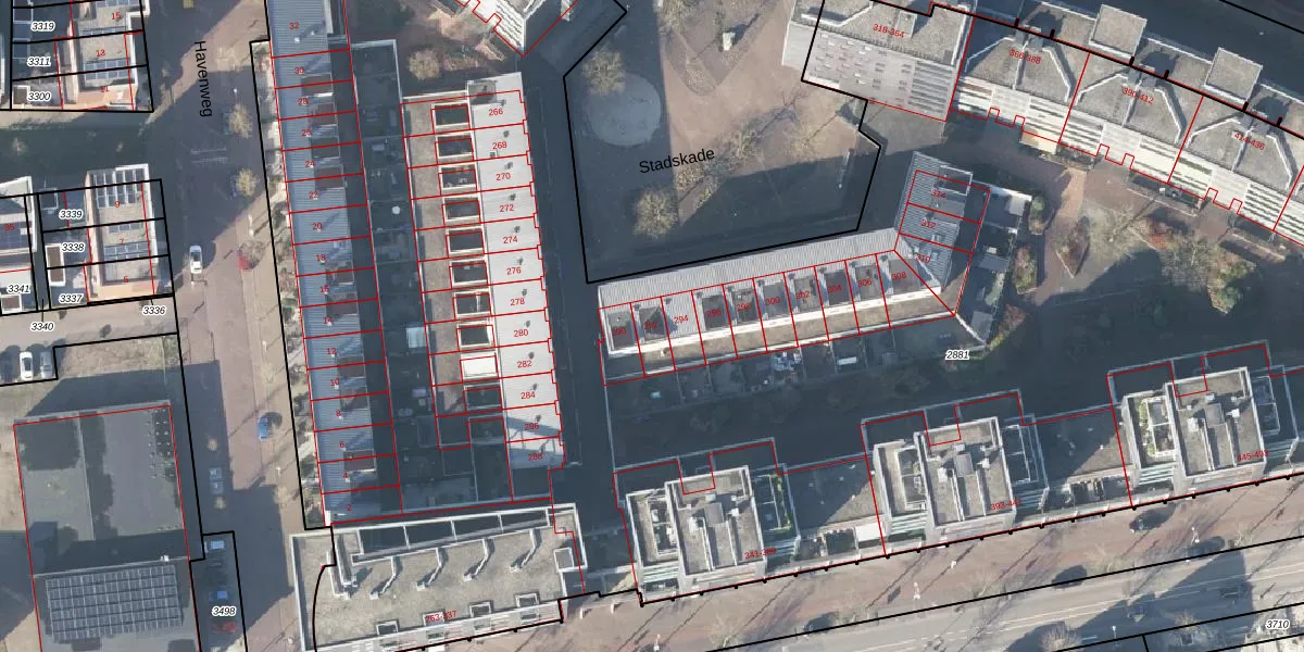 Het perceel waarop Stadskade 292 staat heeft een oppervlakte van 1,4 ha. Dit is een zeer groot perceel. De perceeloppervlakte wordt geregistreerd door het Kadaster. Gedetailleerde informatie over de maten van dit perceel kunt u vinden in het rapport Kadastrale kaart met maatvoering van Stadskade 292.