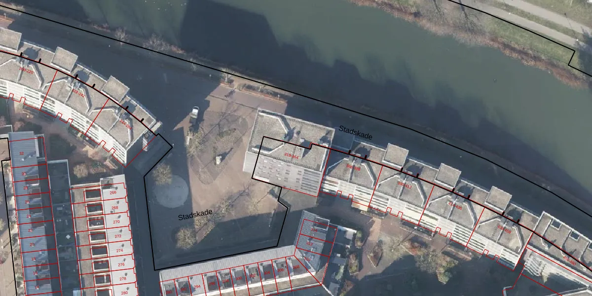 Het perceel waarop Stadskade 318 staat heeft een oppervlakte van 1,4 ha. Dit is een zeer groot perceel. De perceeloppervlakte wordt geregistreerd door het Kadaster. Gedetailleerde informatie over de maten van dit perceel kunt u vinden in het rapport Kadastrale kaart met maatvoering van Stadskade 318.