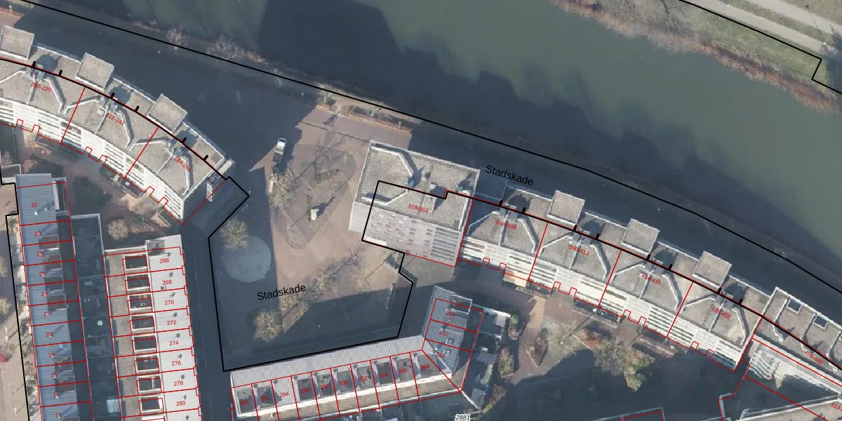 Het perceel waarop Stadskade 324 staat heeft een oppervlakte van 1,4 ha. Dit is een zeer groot perceel. De perceeloppervlakte wordt geregistreerd door het Kadaster. Gedetailleerde informatie over de maten van dit perceel kunt u vinden in het rapport Kadastrale kaart met maatvoering van Stadskade 324.