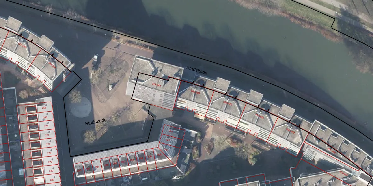 Het perceel waarop Stadskade 374 staat heeft een oppervlakte van 1,4 ha. Dit is een zeer groot perceel. De perceeloppervlakte wordt geregistreerd door het Kadaster. Gedetailleerde informatie over de maten van dit perceel kunt u vinden in het rapport Kadastrale kaart met maatvoering van Stadskade 374.
