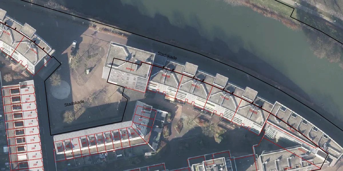 Het perceel waarop Stadskade 380 staat heeft een oppervlakte van 1,4 ha. Dit is een zeer groot perceel. De perceeloppervlakte wordt geregistreerd door het Kadaster. Gedetailleerde informatie over de maten van dit perceel kunt u vinden in het rapport Kadastrale kaart met maatvoering van Stadskade 380.