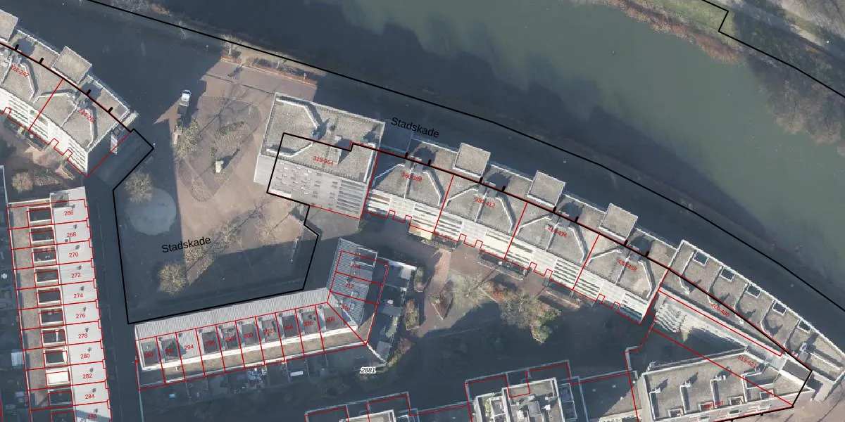 Het perceel waarop Stadskade 384 staat heeft een oppervlakte van 1,4 ha. Dit is een zeer groot perceel. De perceeloppervlakte wordt geregistreerd door het Kadaster. Gedetailleerde informatie over de maten van dit perceel kunt u vinden in het rapport Kadastrale kaart met maatvoering van Stadskade 384.
