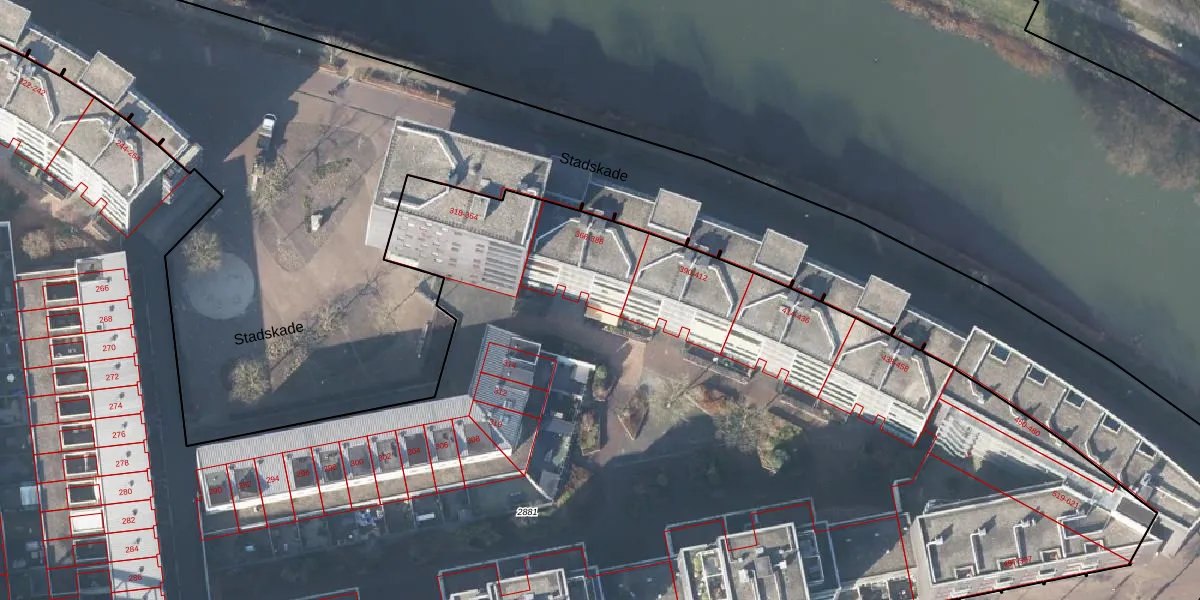 Het perceel waarop Stadskade 388 staat heeft een oppervlakte van 1,4 ha. Dit is een zeer groot perceel. De perceeloppervlakte wordt geregistreerd door het Kadaster. Gedetailleerde informatie over de maten van dit perceel kunt u vinden in het rapport Kadastrale kaart met maatvoering van Stadskade 388.