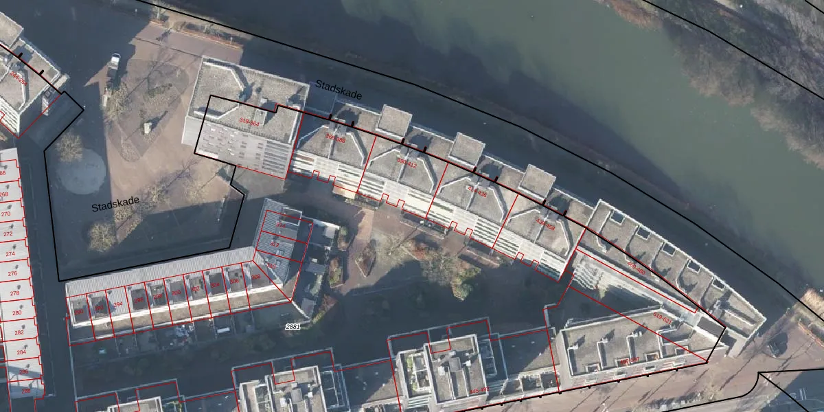 Het perceel waarop Stadskade 412 staat heeft een oppervlakte van 1,4 ha. Dit is een zeer groot perceel. De perceeloppervlakte wordt geregistreerd door het Kadaster. Gedetailleerde informatie over de maten van dit perceel kunt u vinden in het rapport Kadastrale kaart met maatvoering van Stadskade 412.