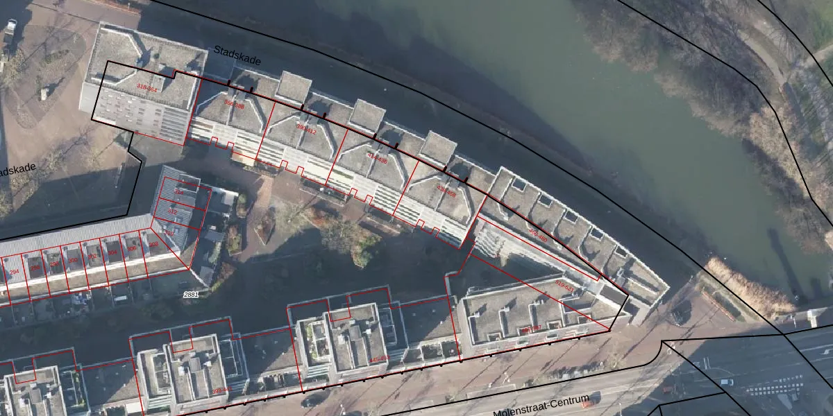Het perceel waarop Stadskade 452 staat heeft een oppervlakte van 1,4 ha. Dit is een zeer groot perceel. De perceeloppervlakte wordt geregistreerd door het Kadaster. Gedetailleerde informatie over de maten van dit perceel kunt u vinden in het rapport Kadastrale kaart met maatvoering van Stadskade 452.