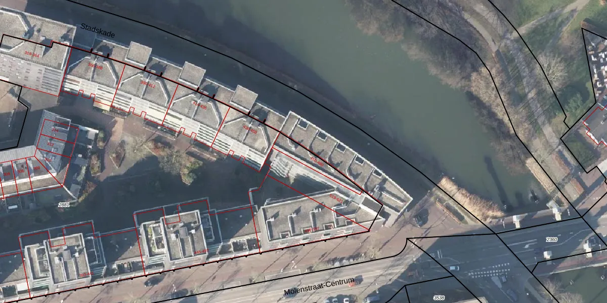 Het perceel waarop Stadskade 464 staat heeft een oppervlakte van 1,4 ha. Dit is een zeer groot perceel. De perceeloppervlakte wordt geregistreerd door het Kadaster. Gedetailleerde informatie over de maten van dit perceel kunt u vinden in het rapport Kadastrale kaart met maatvoering van Stadskade 464.