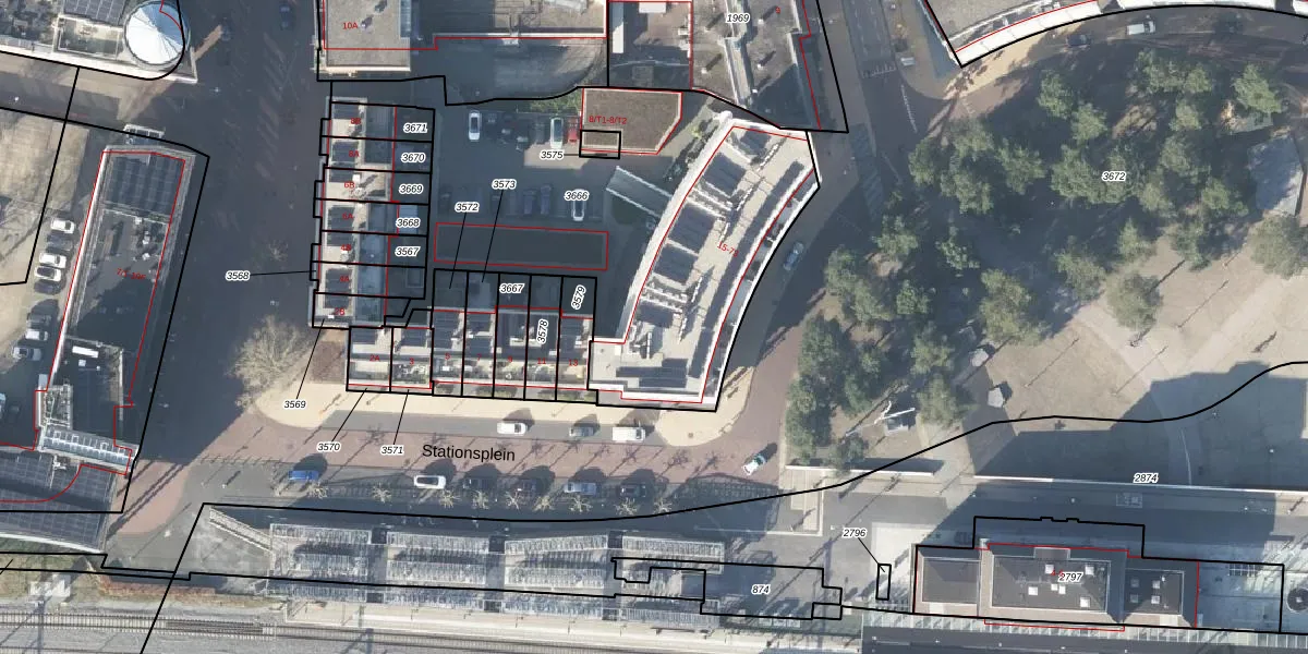 Het perceel waarop Stationsplein 29 staat heeft een oppervlakte van 2008 m². Dit is een zeer groot perceel. De perceeloppervlakte wordt geregistreerd door het Kadaster. Gedetailleerde informatie over de maten van dit perceel kunt u vinden in het rapport Kadastrale kaart met maatvoering van Stationsplein 29.