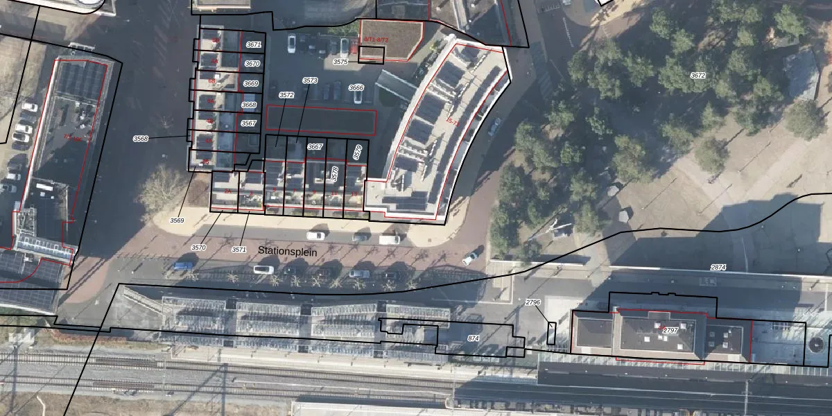Het perceel waarop Stationsplein 51 staat heeft een oppervlakte van 2008 m². Dit is een zeer groot perceel. De perceeloppervlakte wordt geregistreerd door het Kadaster. Gedetailleerde informatie over de maten van dit perceel kunt u vinden in het rapport Kadastrale kaart met maatvoering van Stationsplein 51.