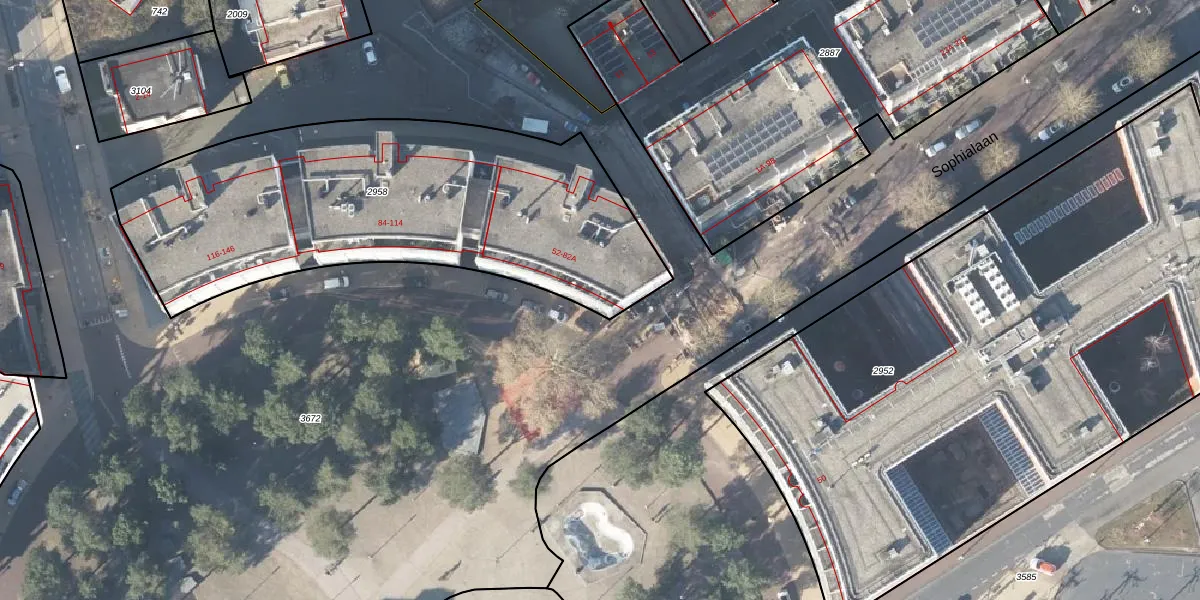 Het perceel waarop Stationsplein 82 staat heeft een oppervlakte van 2073 m². Dit is een zeer groot perceel. De perceeloppervlakte wordt geregistreerd door het Kadaster. Gedetailleerde informatie over de maten van dit perceel kunt u vinden in het rapport Kadastrale kaart met maatvoering van Stationsplein 82.